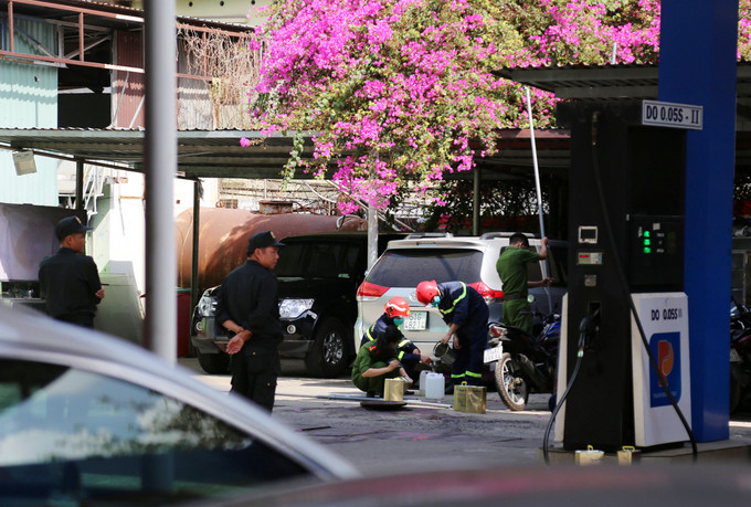 Khu vực cây xăng bị công an phong tỏa.