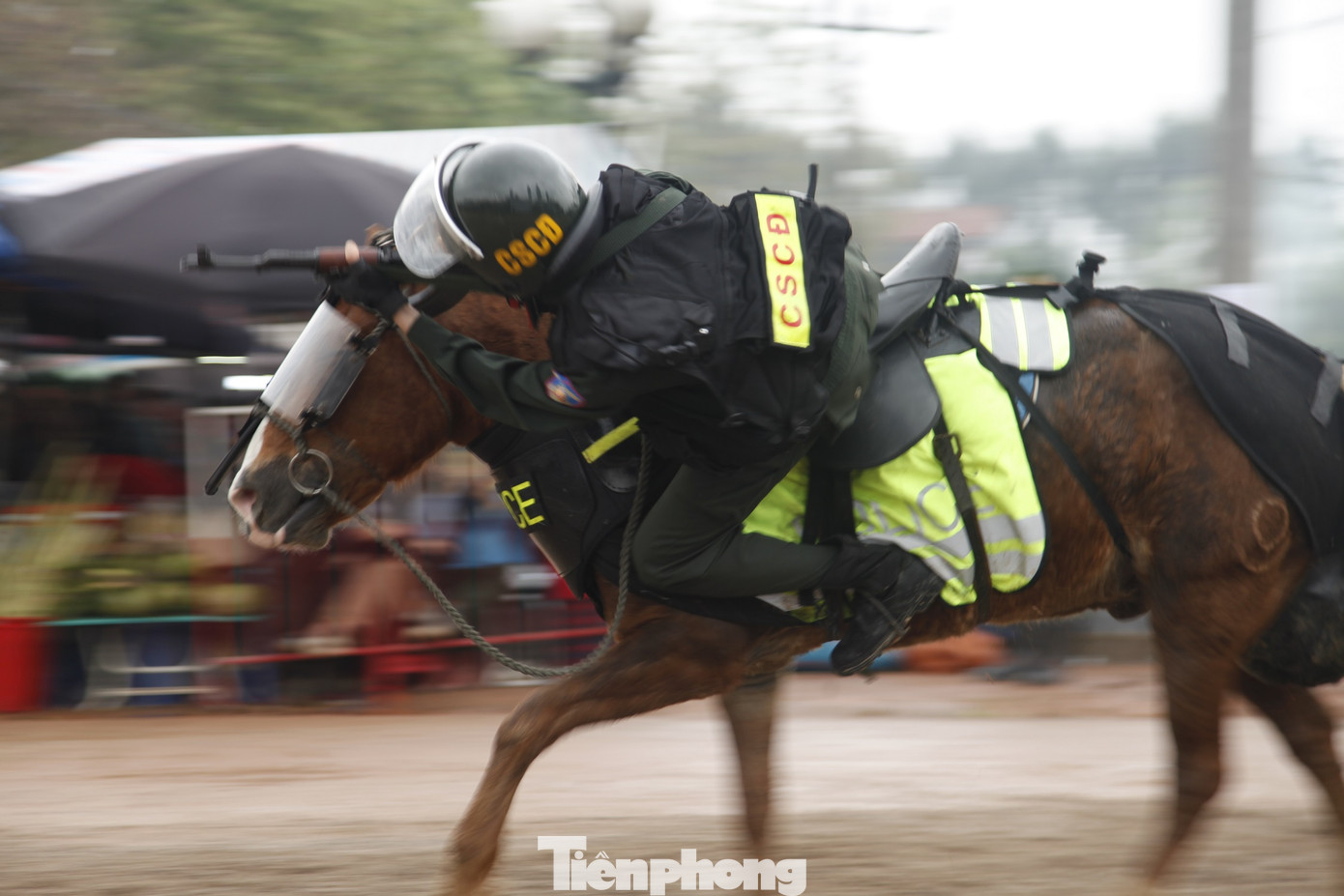 Đoàn Cảnh sát cơ động Kỵ binh thuộc Bộ Tư lệnh Cảnh sát cơ động, Bộ Công an được thành lập với chức năng, nhiệm vụ chính là trực tiếp huấn luyện, sử dụng ngựa đấu tranh phòng, chống tội phạm bảo đảm an ninh trật tự; tổ chức đào tạo, bồi dưỡng cán bộ, chiến sỹ làm công tác quản lý, huấn luyện và sử dụng ngựa; tổ chức chăm sóc và thực hiện các nhiệm vụ theo chương trình, kế hoạch được cấp có thẩm quyền phê duyệt. Ảnh: Nguyễn Thắng
