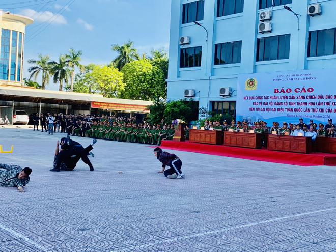 Tại buổi báo cáo kết quả huấn luyện, cán bộ, chiến sỹ Phòng cảnh sát cơ động đã đồng diễn 34 động tác và quyền gậy; các tình huống võ đối kháng; kỹ, chiến thuật leo nhà cao tầng bằng sào đẩy và xuống dây; vượt vật cản, phục kích bắt đối tượng trên các loại địa hình; giải tán đám đông, chống gây rối, biểu tình, bạo loạn; biểu diễn khí công, nội công. Thông qua huấn luyện đã nâng cao năng lực lãnh đạo, chỉ huy của đội ngũ cán bộ, rèn luyện ý chí chiến đấu, khả năng thực hành kỹ, chiến thuật chiến đấu; làm chủ vũ khí, khí tài, trang thiết bị kỹ thuật nghiệp vụ; sẵn sàng bảo vệ đại hội Đảng bộ tỉnh Thanh Hóa lần thứ XIX, tiến tới đại hội Đảng toàn quốc lần thứ XIII.
