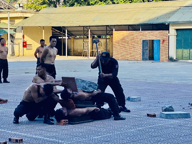 Cảnh sát cơ động Thanh Hóa luyện tập võ thuật bảo vệ đại hội Đảng