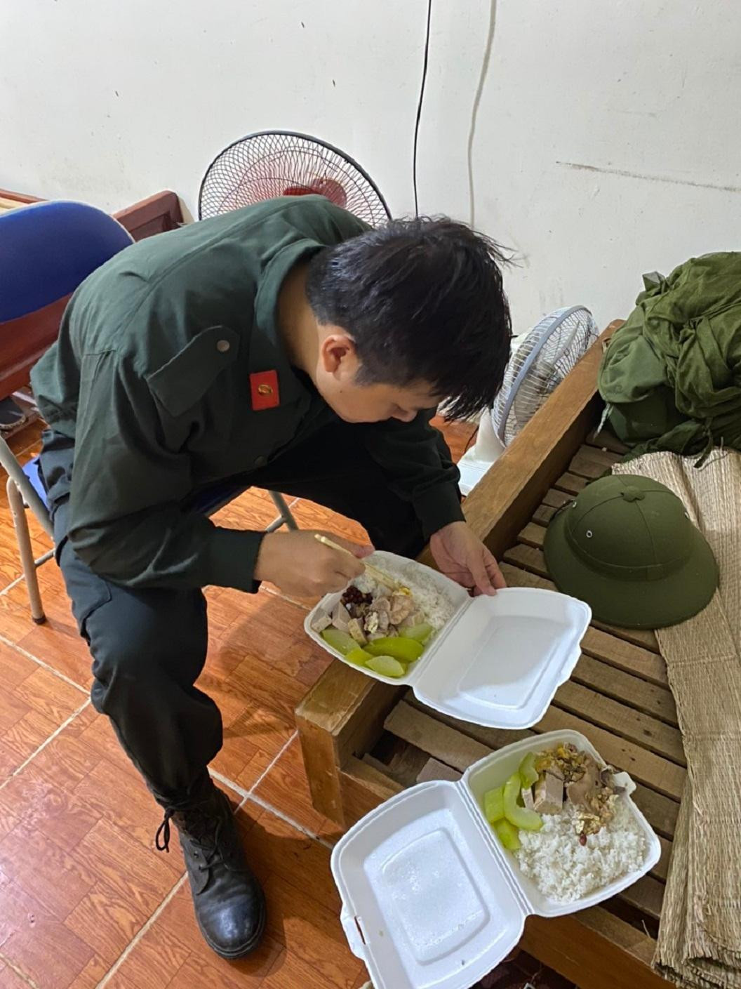 | Việc ăn uống, nghỉ ngơi của các chiến sĩ được thực hiện nhanh chóng, tranh thủ để tập trung làm nhiệm vụ kiểm soát, phòng chống dịch bệnh. |