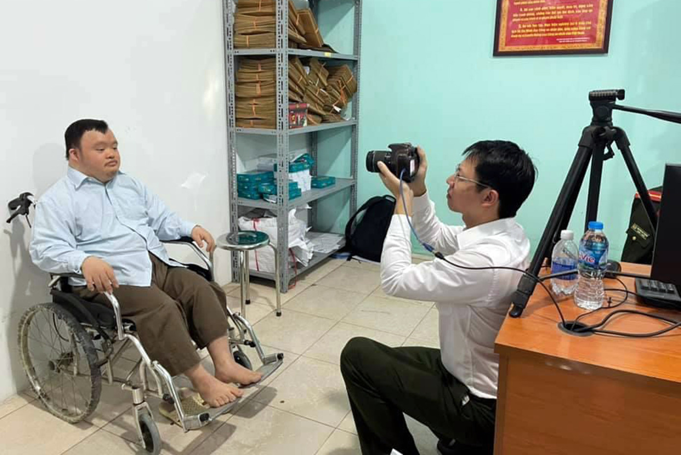 Người dân được hỗ trợ làm các thủ tục cấp căn cước như chụp ảnh, lấy dấu vân tay.
