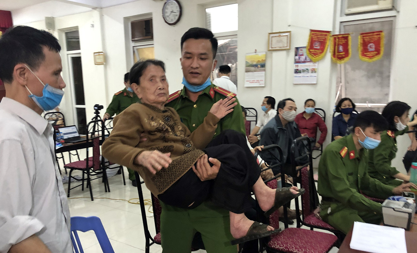 Cụ bà 95 tuổi đi làm căn cước công dân được cán bộ chiến sĩ giúp đỡ, cõng tới nơi làm thủ tục.