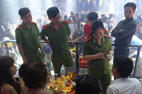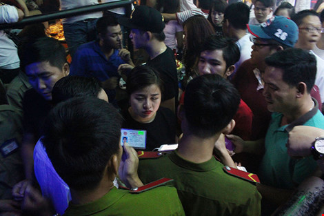 Công an quận 1 kiểm tra xem khách có sử dụng ma túy không.