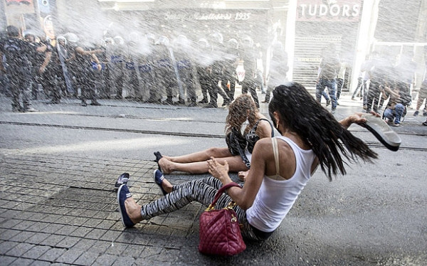 Cảnh sát đã điều động nhiều xe có vòi rồng để xịt nước áp lực cao vào đám đồng người đồng tính mặc quần áo màu sắc sặc sỡ và vẫy cờ 7 màu (xanh, đỏ, tím, vàng, lam, chàm và tím) gần trung tâm Quảng trường Taksim, một địa điểm mua sắm thu hút rất nhiều khách du lịch.