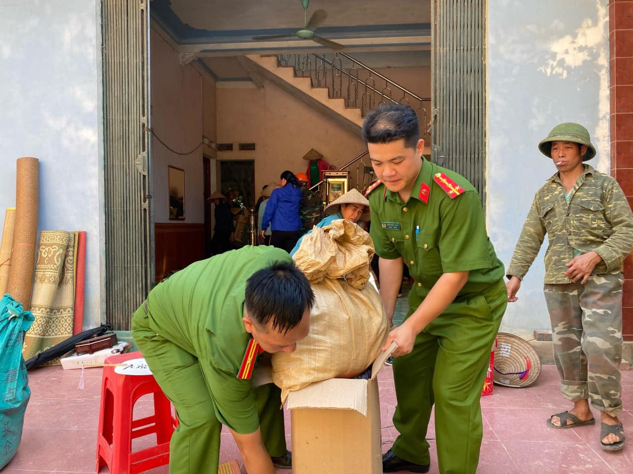 | Lực lượng Công an Lạng Sơn giúp dân di chuyển đồ đạc, tài sản đến nơi an toàn, phòng chống mưa bão. |