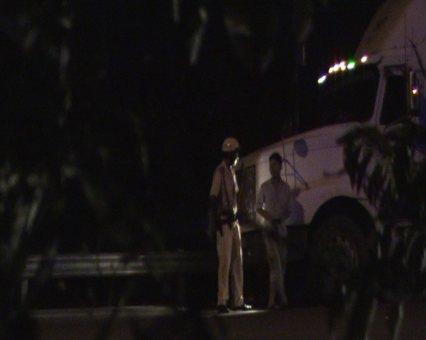 Kế tiếp, xe container 62L-398… vừa tấp vào liền bị thiếu tá Nghĩa buộc kiểm tra giấy tờ và cũng đi tới đi lui thương lượng. Trong khi tài xế lui cui móc bóp thì thiếu tá Nghĩa đứng bên hông xe tải kiên nhẫn chờ đợi...