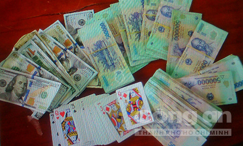 Các con bạc đến chơi sẽ được Đinh Thế Trực (39 tuổi) và Huỳnh Văn Tùng (tự Tùng “bùa”, 42 tuổi, có 1 tiền án trộm cắp tài sản) chạy xe máy ra đón, kiểm tra.