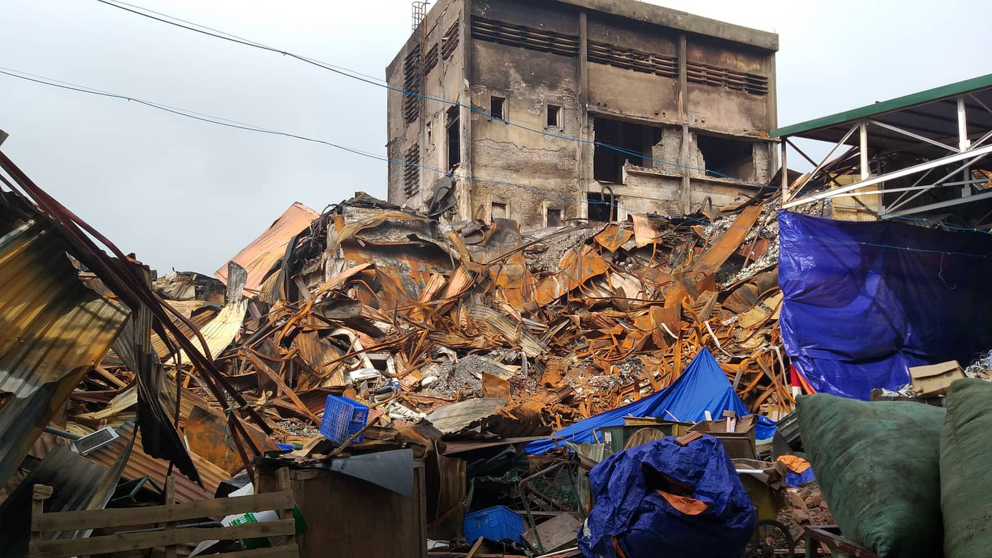 Cảnh tan hoang như một bãi phế thải bên trong nhà máy sau nửa tháng xảy ra vụ cháy.
