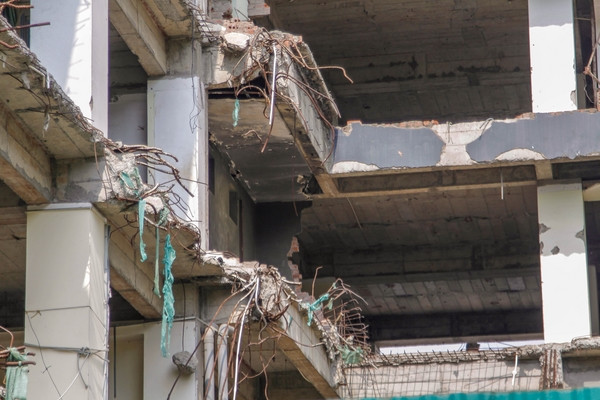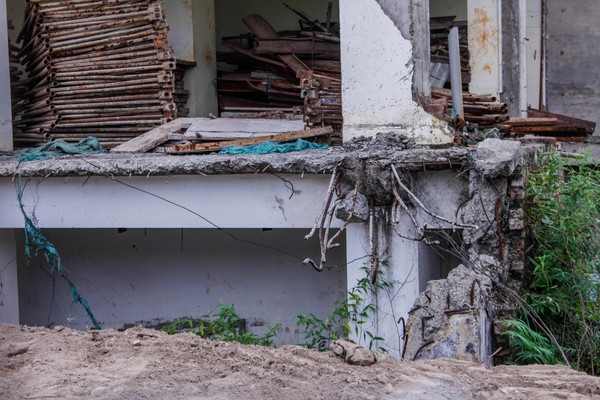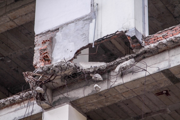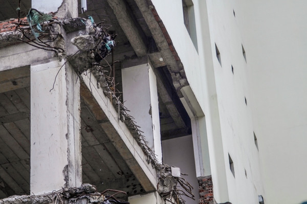 Các lõi bê tông, cốt thép "lòi" hẳn ra ngoài trở thành điểm xấu của đô thị.