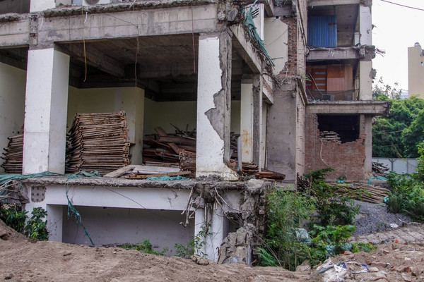 Tòa nhà này từng được đưa vào sử dụng nhưng do có quá nhiều sai phạm về thay đổi kết cấu công trình nên bị yêu cầu dừng thi công.
