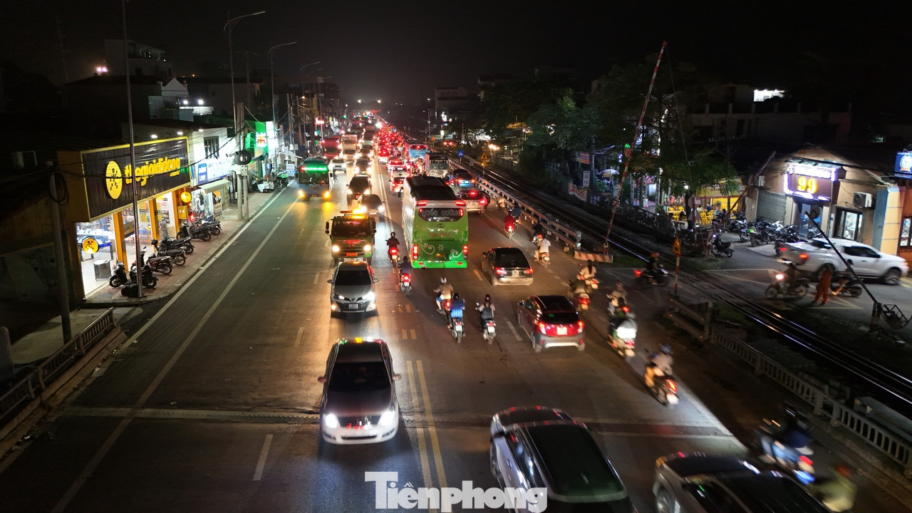 | Cả hai chiều đường, ô tô dàn hàng 6 hàng 7. Các phương tiện nhích từng chút trên đường. |