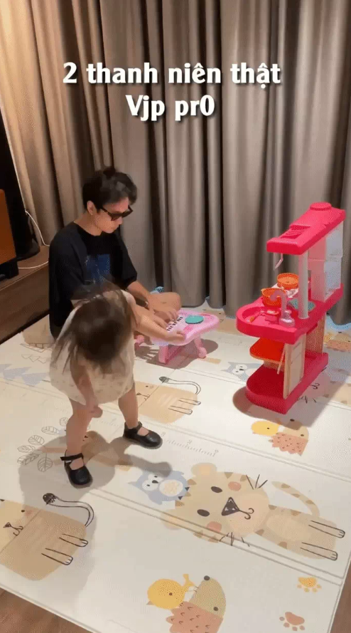 | CiCi ra dáng chị cả khi thay bố mẹ chơi với em. |
