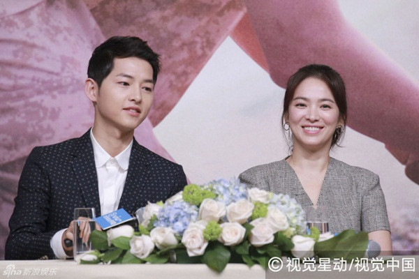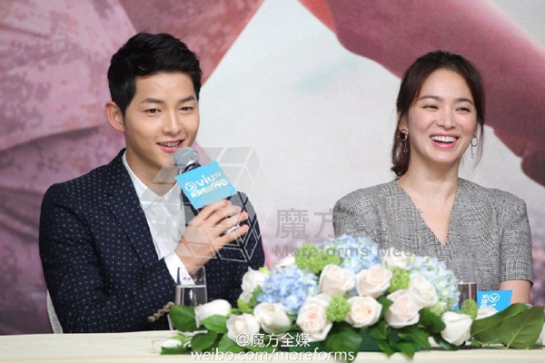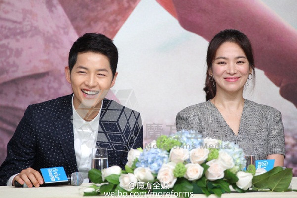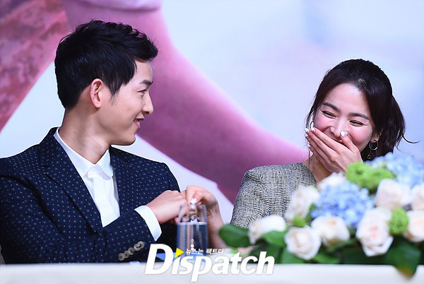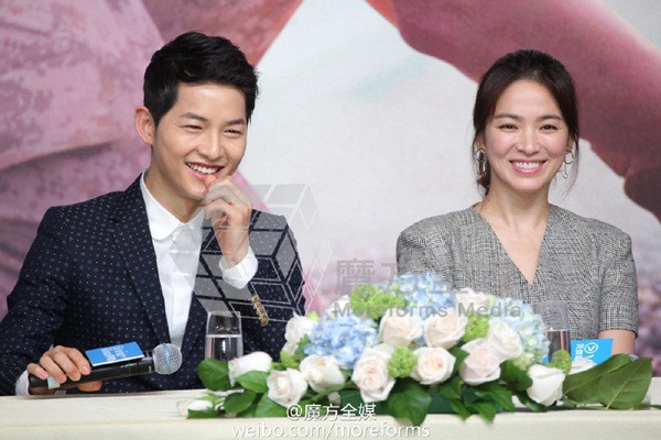 Trong suốt buổi họp báo, Song Joong Ki liên tục trò chuyện với Song Hye Kyo.