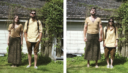Không ít người đã bật cười thích thú khi chứng kiến cô gái lọt thỏm trong trang phục thùng thình của bạn trai hay những chàng cao lớn chật vật trong những bộ áo quần chật chội hay thậm chí trong bộ váy bạn gái.