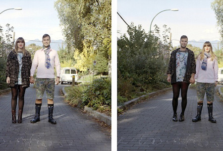 Để thực hiện dự án mang tên “Switcheroo”, nhiếp ảnh gia Hana Pesut tốn không ít công sức để thuyết phục các cặp đôi tráo đổi đồ và chụp ảnh.