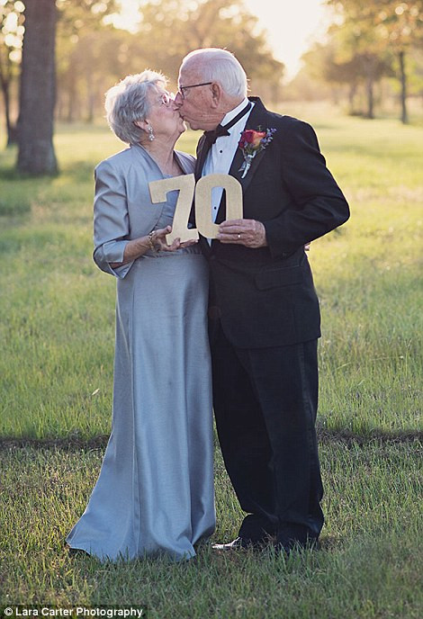 Cặp đôi cụ ông Ferris (90 tuổi) và cụ bà Margaret Romaire (89 tuổi) sống tại bang Lousiana (Mỹ) mới đây đã thực hiện một bộ ảnh cưới nhân dịp kỉ niệm 70 năm sống bên nhau.