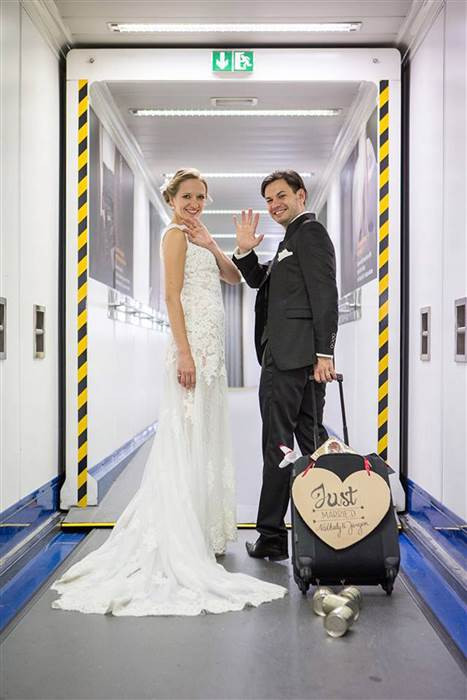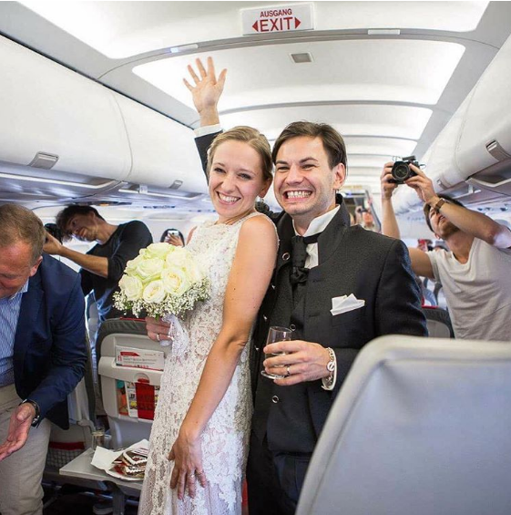 Và đó chỉ là khởi đầu. Đám cưới đơn giản nhưng bất ngờ diễn ra. Nathaly trong bộ váy cưới mơ ước hạnh phúc bên chú rể Jurgen, đứng trước họ là vị cha xứ làm chủ trì hôn lễ, bên cạnh là nghệ sỹ violon cất tiếng đàn du dương ngay giữa chuyến bay.