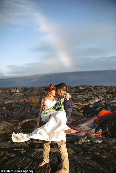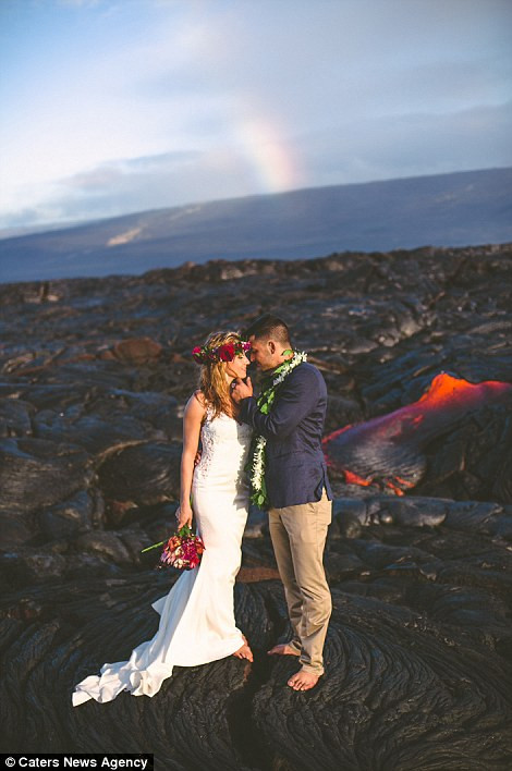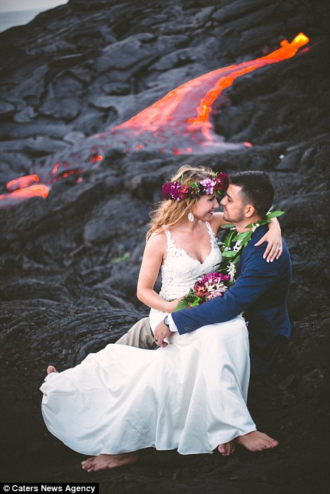 Cặp đôi mới cưới người Mỹ Lauren (24 tuổi) và Alexander Michaels(26 tuổi) vừa tung ra bộ ảnh cưới có chủ đề “Red Wedding” (“Đám cưới đỏ”), được thực hiện trên sườn núi lửa Kilauea (Hawaii) bên cạnh dòng dung nham nóng chảy.