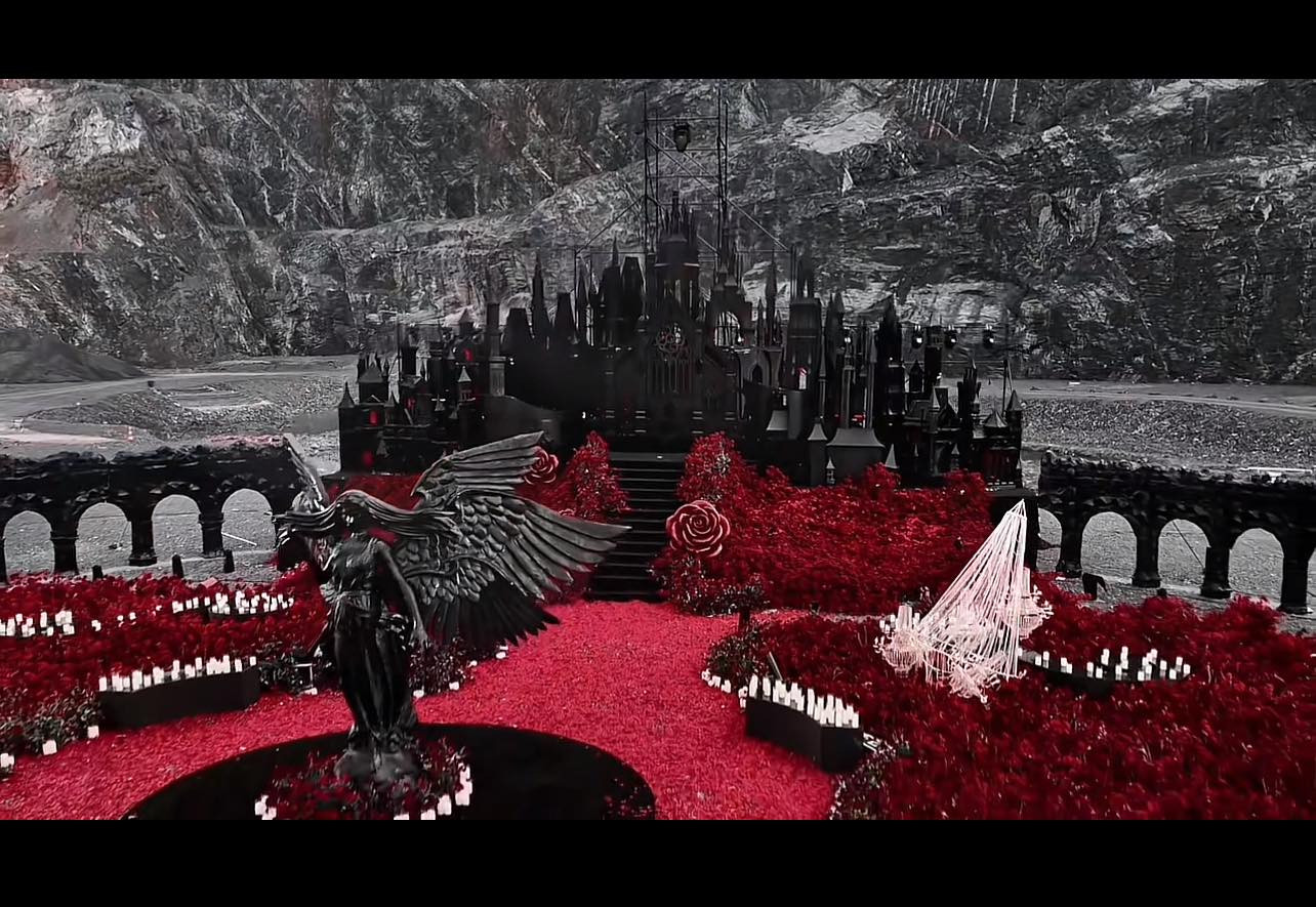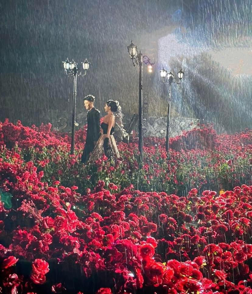 Bối cảnh cho lễ cầu hôn được dựng lên với một tòa lâu đài châu Âu mang đậm phong cách Gothic, nằm trong khu vườn bạt ngàn hoa hồng đỏ tươi. Netizen xứ Trung bình luận, nếu tổng chi phí cho buổi lễ là 3 tỷ đồng thì có lẽ số tiền Nhiệm Quyền chi trả cho vườn hồng phải lên đến 2 tỷ đồng.