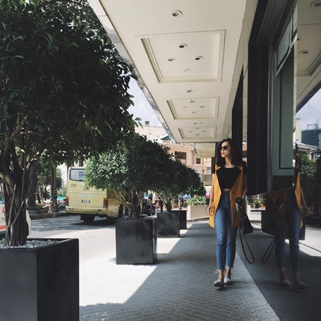 Phụ kiện được người đẹp sử dụng nhiều nhất cùng set đồ đơn giản là giày thể thao, giày bệt, kính mắt và túi xách đơn sắc. Vóc dáng cân đối cùng nước da sáng khiến cô vẫn nổi bật dù chọn phong cách không chút cầu kỳ.