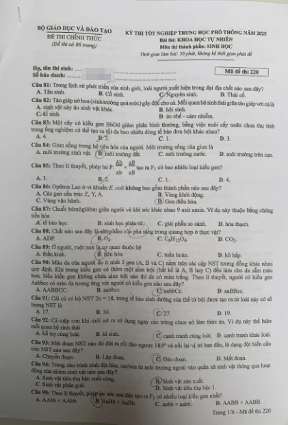 Đề thi Sinh học