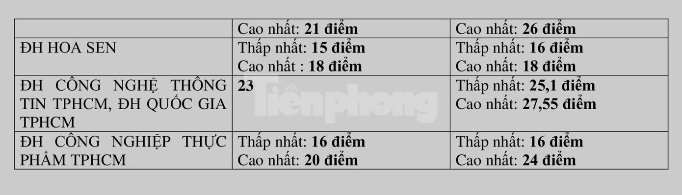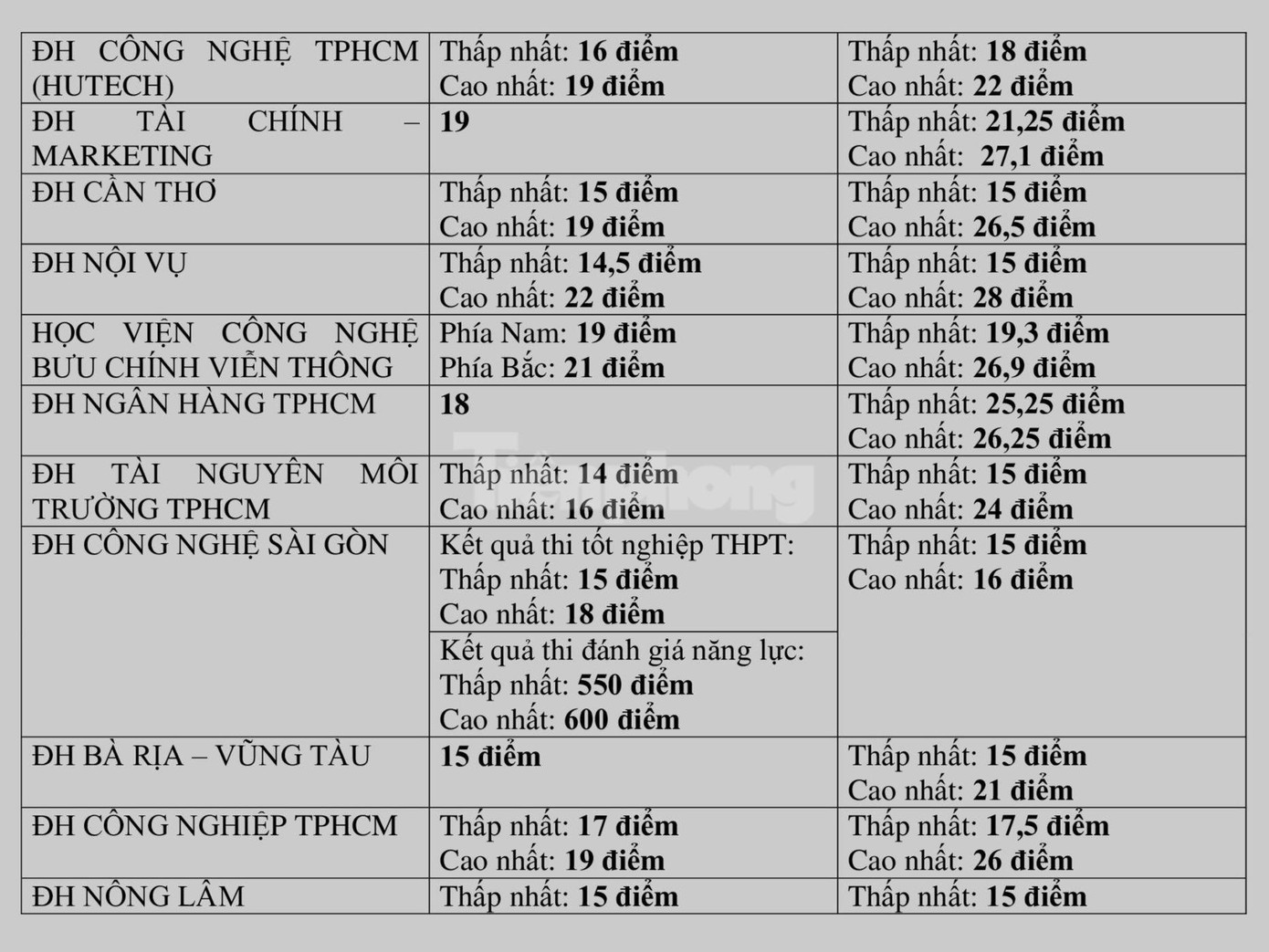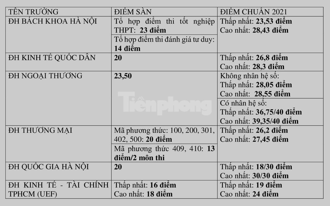 Ghi nhận cho thấy, đến thời điểm này, mức điểm sàn cao nhất là 23,5 ( Trường Đại học Ngoại thương) và thấp nhất là 14,5 (Trường ĐH Nội vụ).