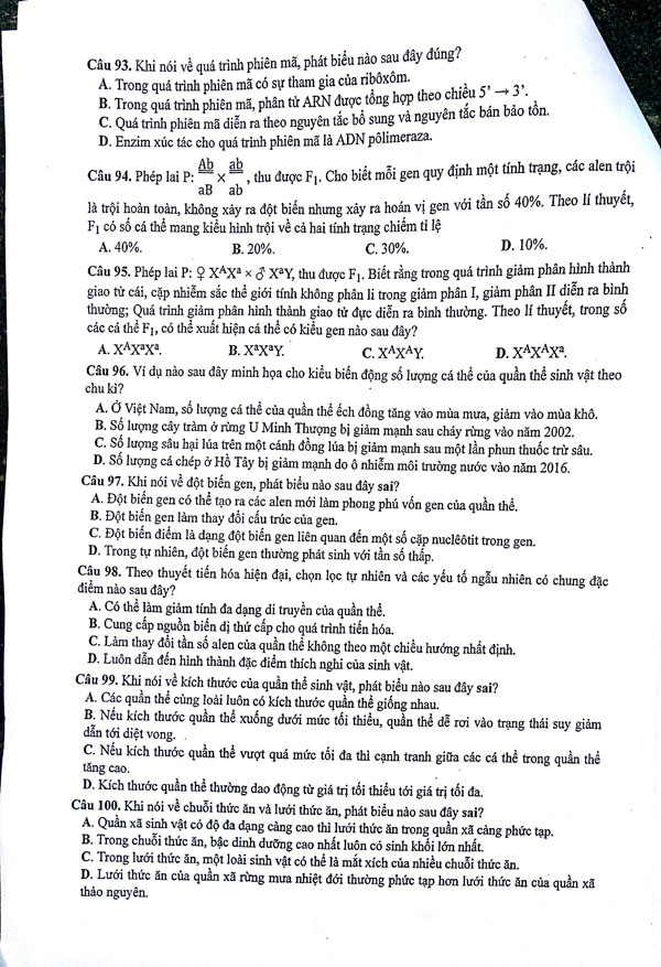 Cập nhật đáp án, đề thi, nhận định chuyên gia môn Sinh học THPT Quốc gia ảnh 6