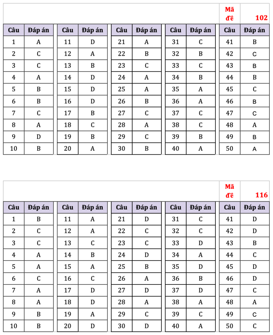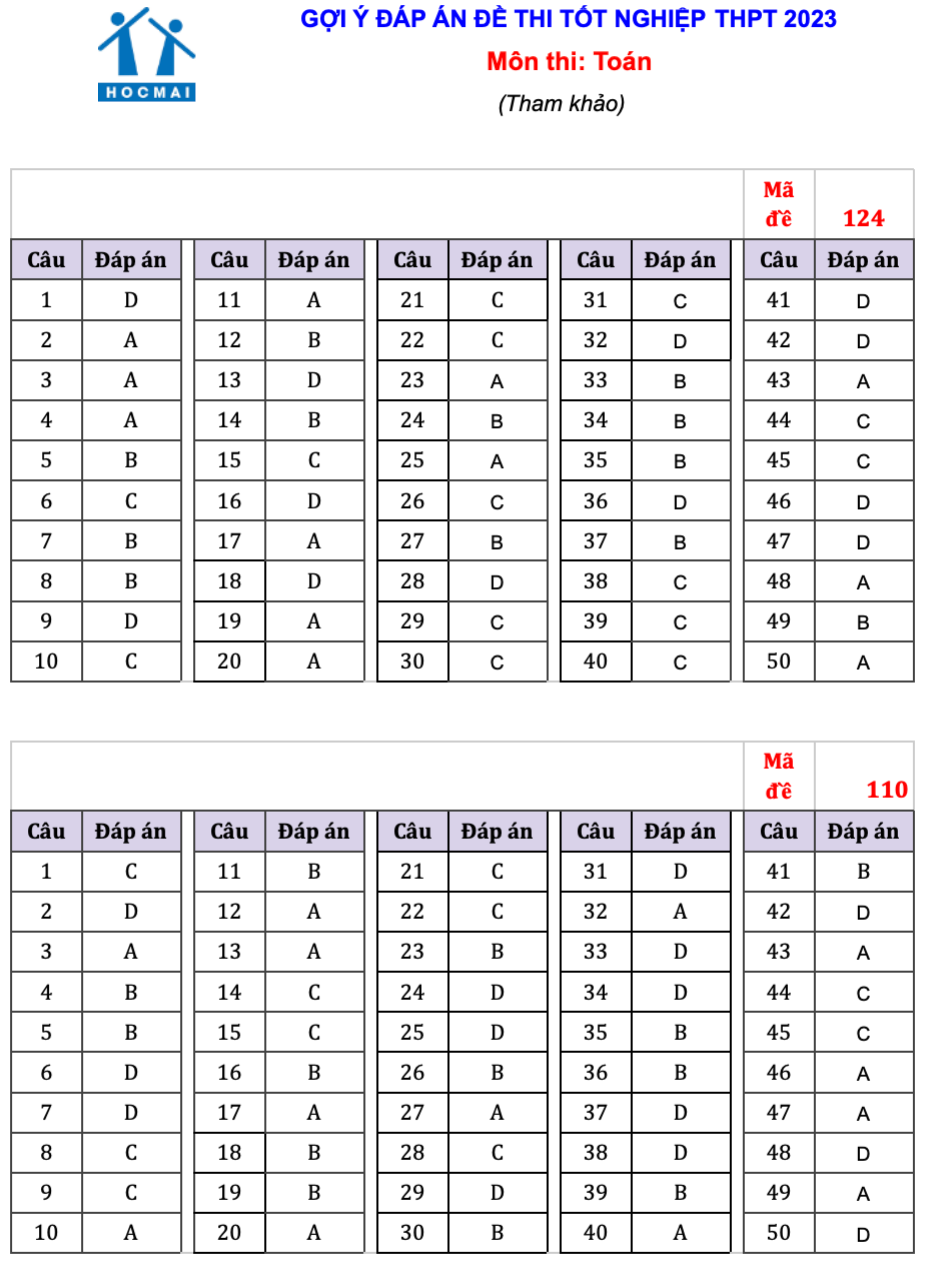 Dưới đây là đáp án môn Toán do tuyensinh247, Hệ thống giáo dục HOCMAI thực hiện, mời thí sinh tham khảo: