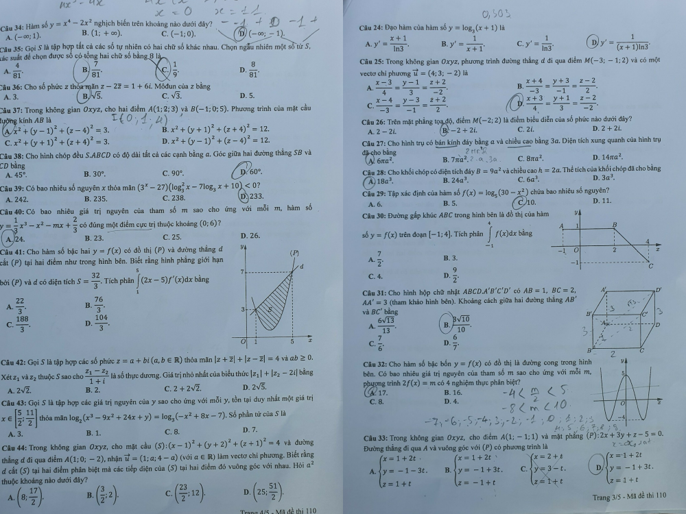 | Đề thi môn Toán mã đề 110 kỳ thi Tốt nghiệp THPT năm 2023. |