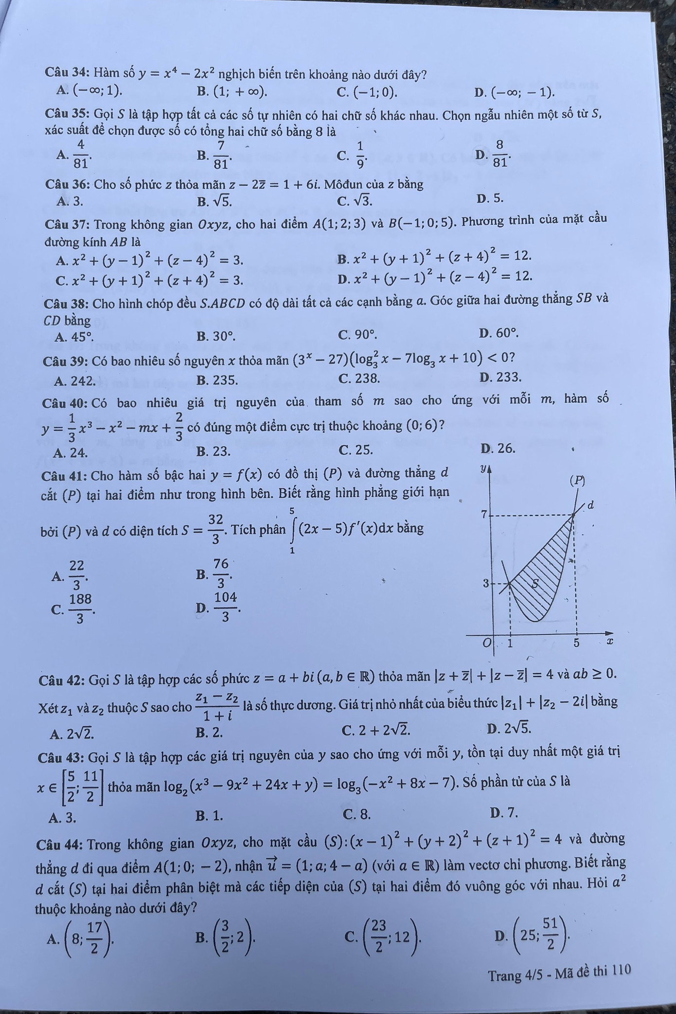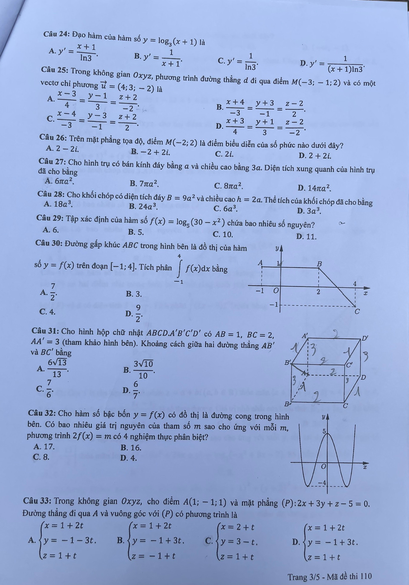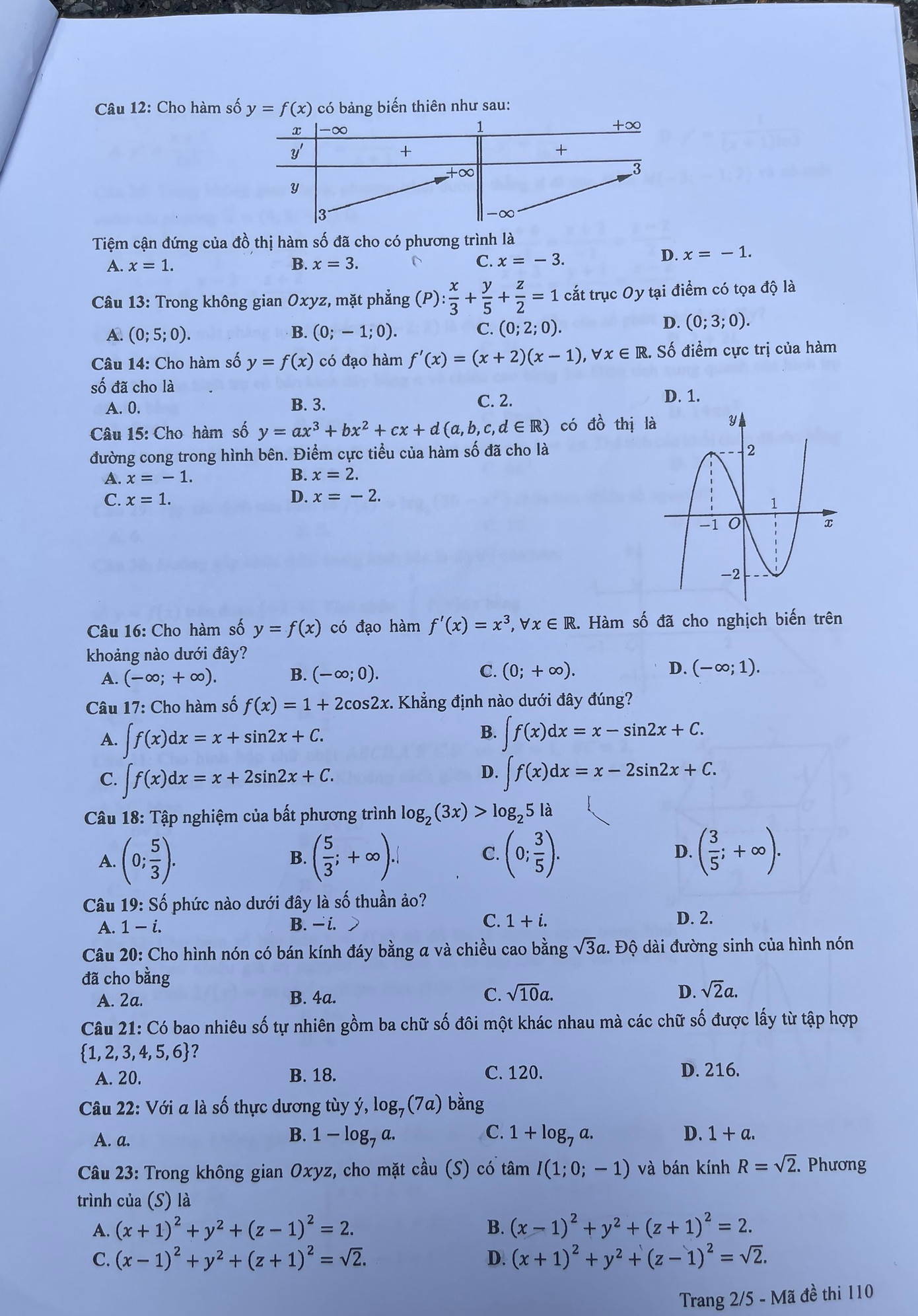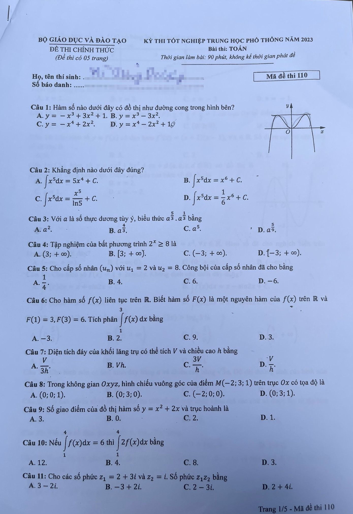 | Đề thi Toán, mã đề 110. Ảnh: Trọng Tài |