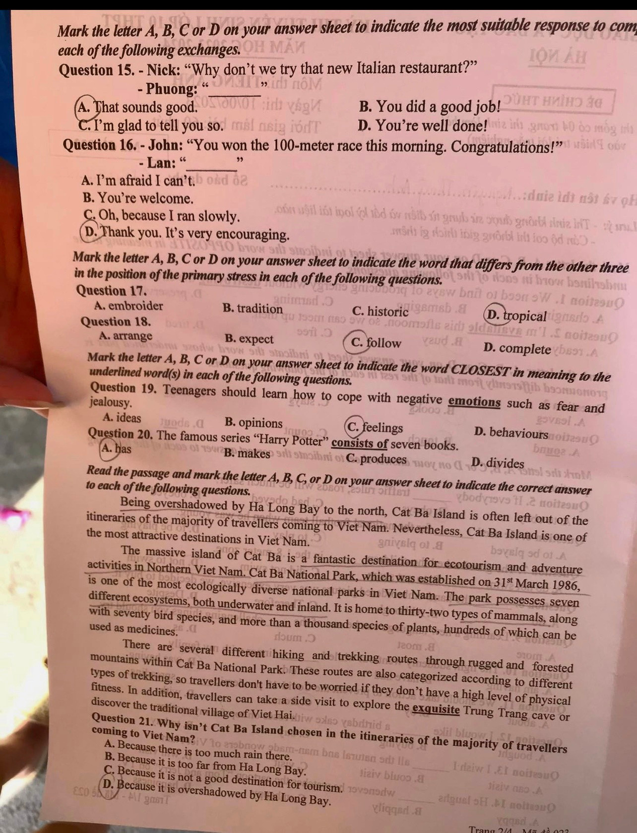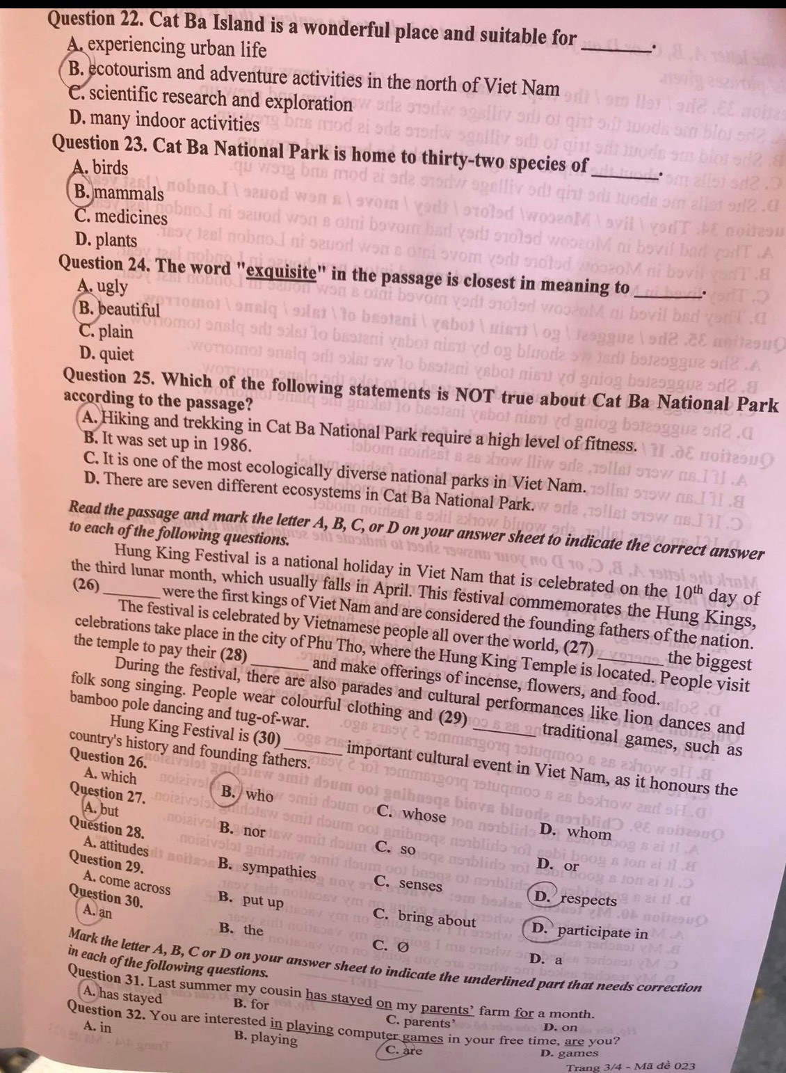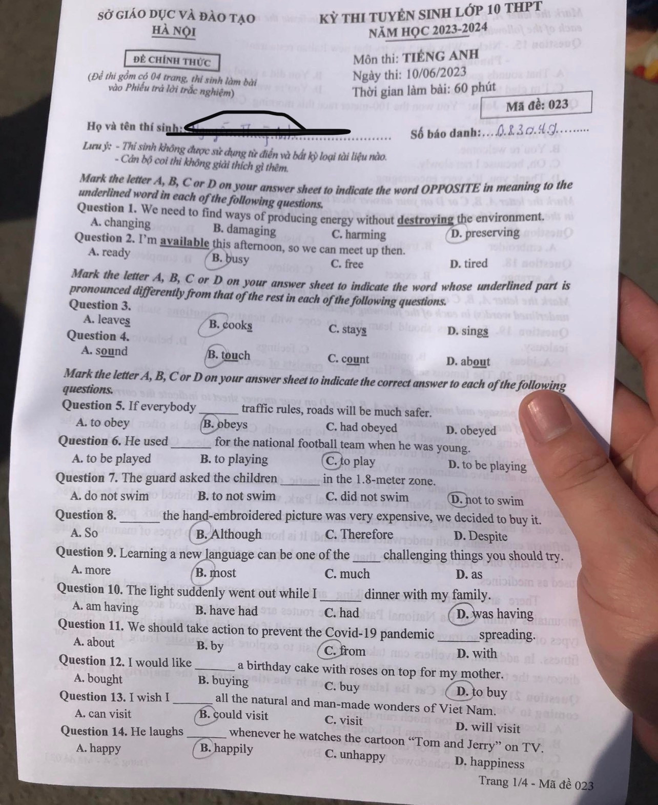 Dưới đây, xin giới thiệu gợi ý đáp án bài thi môn Ngoại ngữ, mã đề số 023 của Hệ thống giáo dục Hocmai: