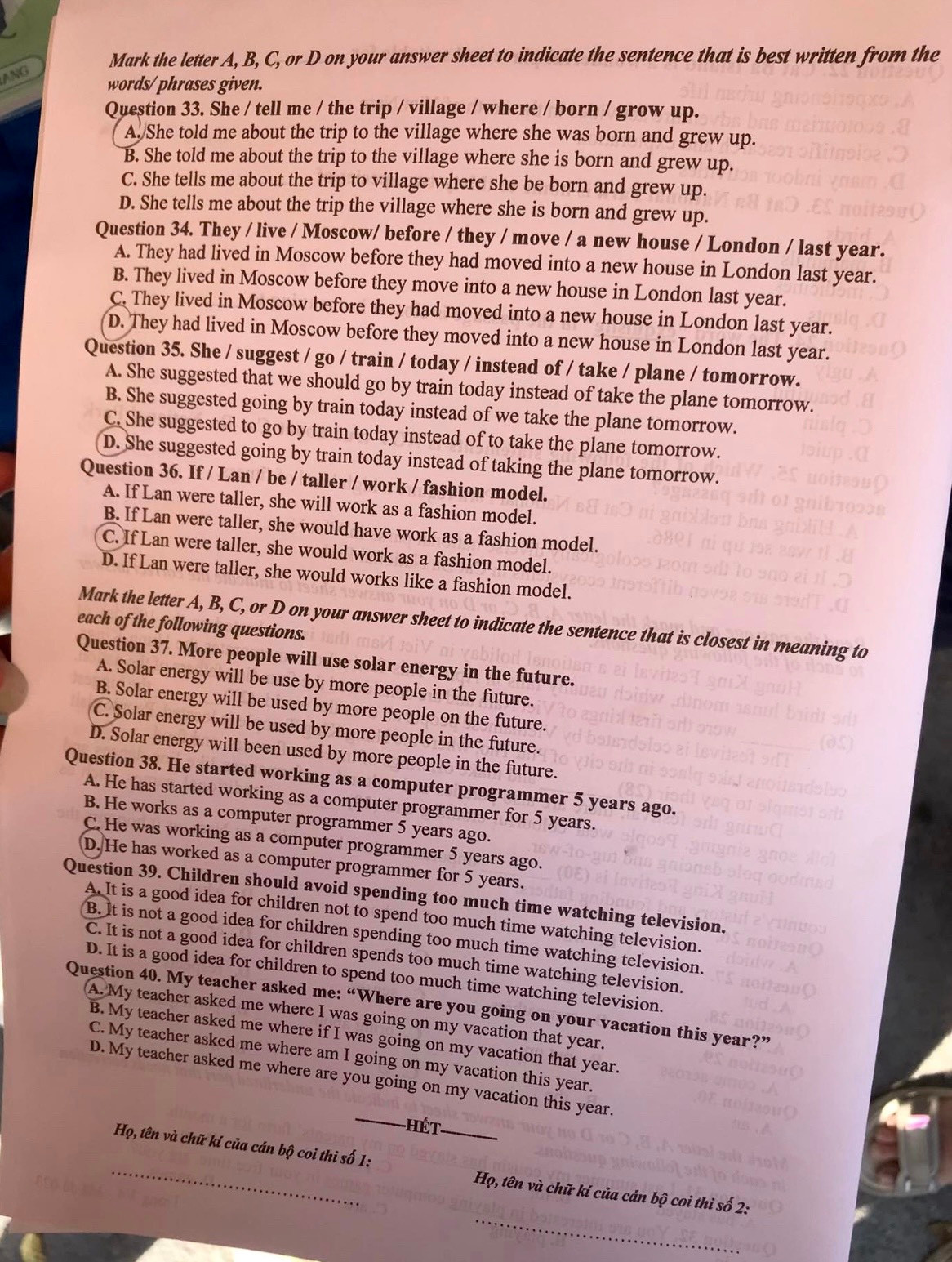 Đề thi Ngoại Ngữ ngày 10/6, mã đề 004