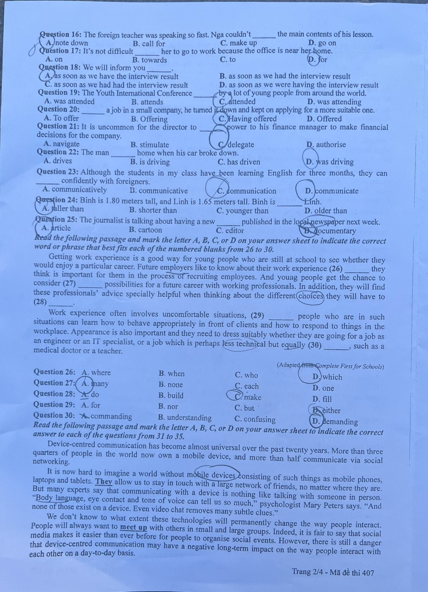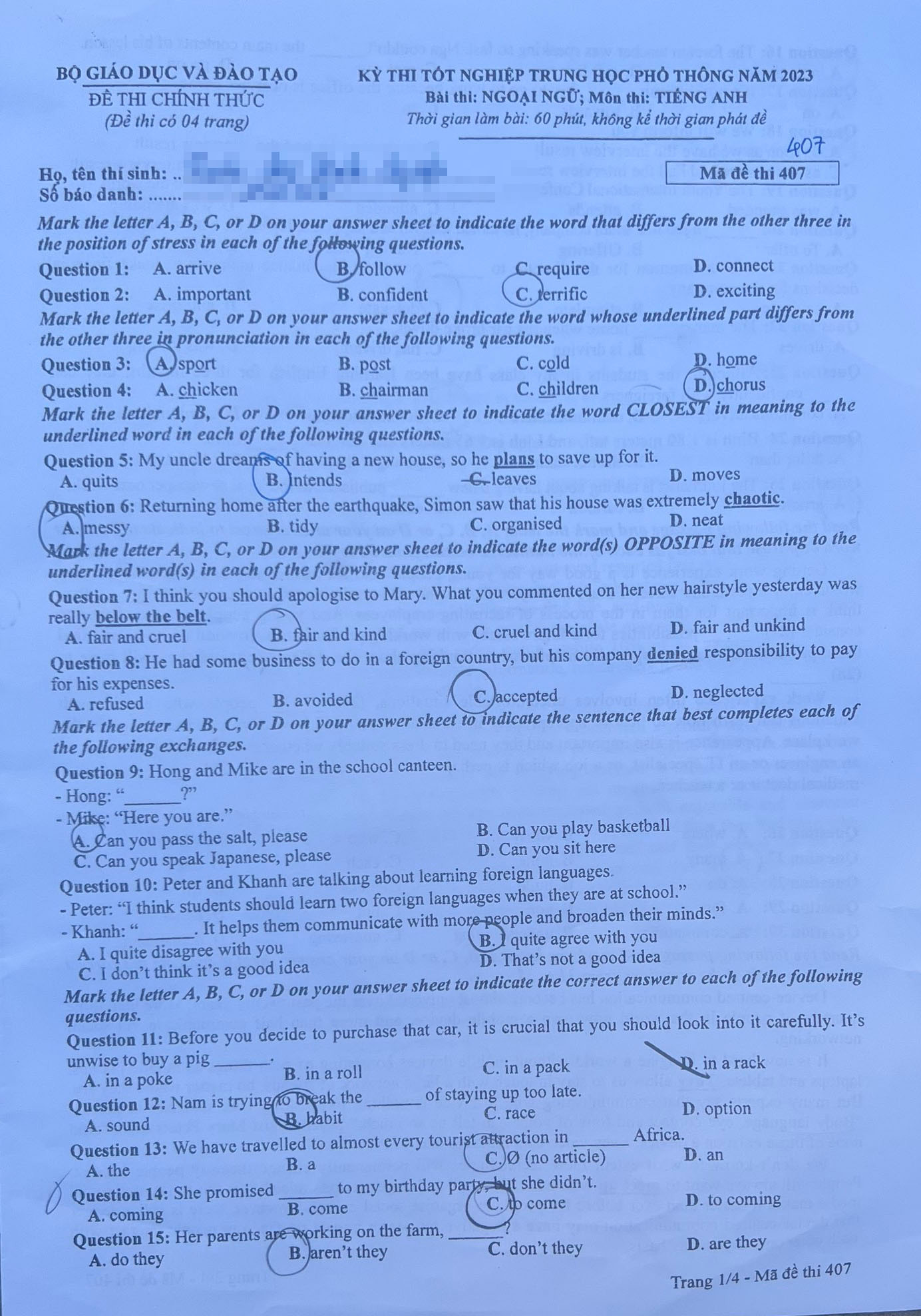 Tiếng Anh - Mã 407