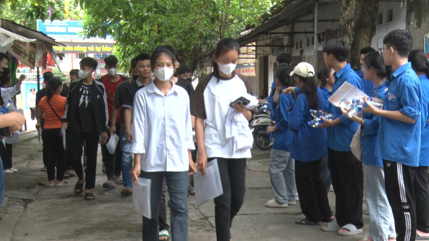 Tại thành phố Vinh (Nghệ An), thời tiết nắng nóng nên các thí sinh và phụ huynh khá vất vả. Phía ngoài cổng trường, lực lượng đoàn viên thanh niên vẫn tích cực hỗ trợ, tiếp nước cho các thí sinh sau khi rời phòng thi.
