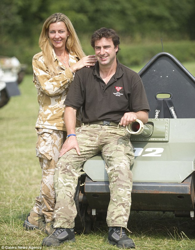 Ông Andrew Baker, một thợ cơ khí và vợ sưu tập xe tăng trong suốt 20 năm qua. Cho đến nay, bộ sưu tập đã lên tới 80 xe tăng, họ cất giữ chúng trong một nhà kho của gia đình ở Dunchurch, Warwickshire, nước Anh.