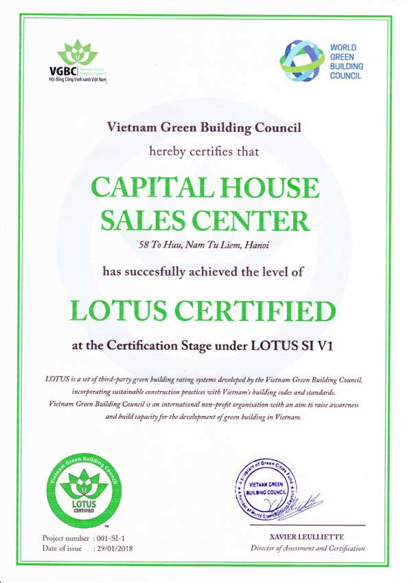 Capital House Sales Center nhận chứng chỉ xanh LOTUS