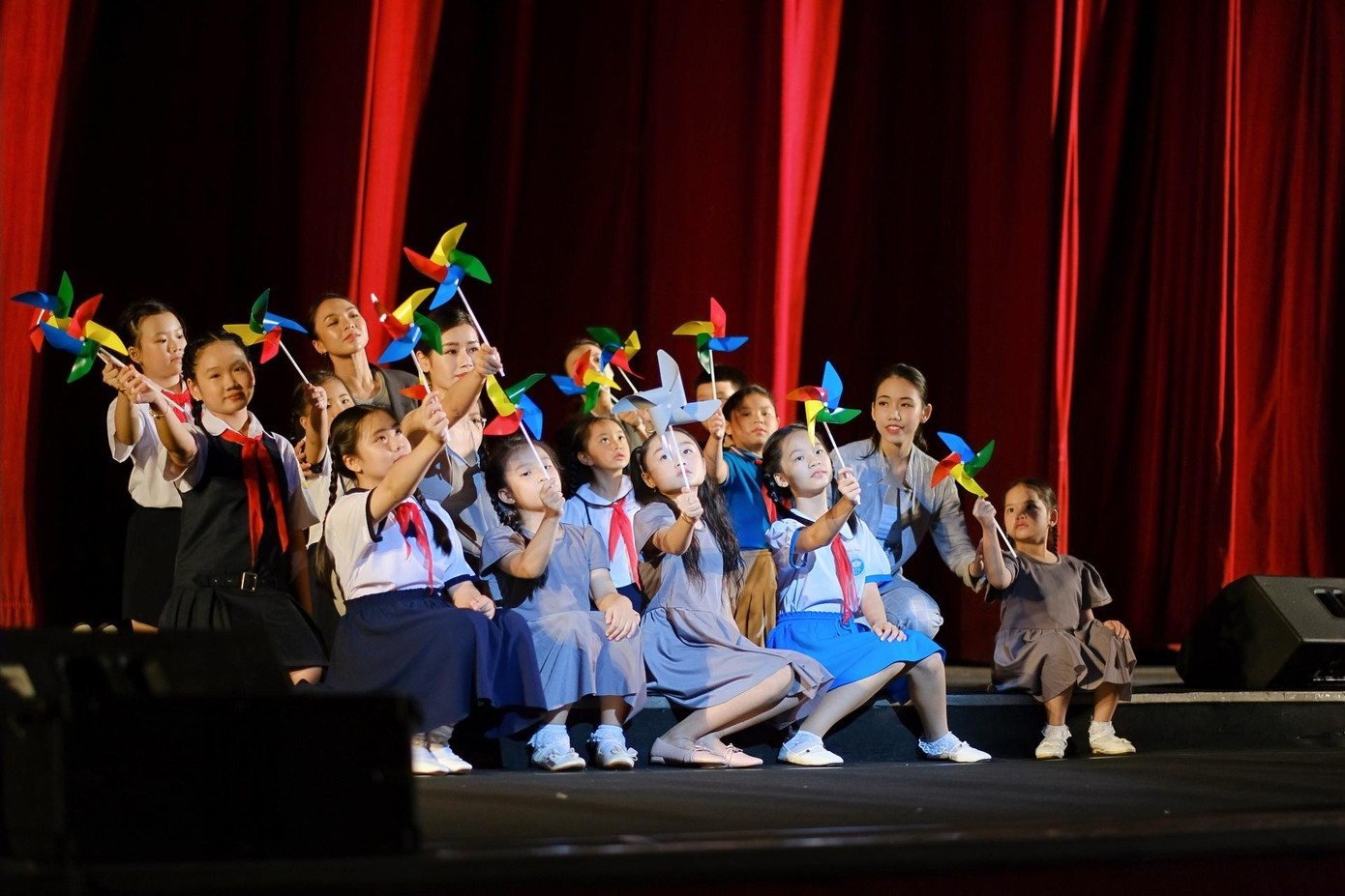 | Nhóm kịch NSƯT Mỹ Uyên, đội Sơn ca nhà thiếu nhi Quận 3 và vũ đoàn Nhà hát giao hưởng nhạc vũ kịch TP.HCM mở đầu chương trình đầy ấn tượng. |