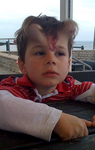 Các bác sĩ phẫu thuật đã kéo căng phần da bình thường trên trán, lớp da có vết bớt sẽ dần được loại bỏ. Nhưng, không may là lớp da trên trán bị phồng lên, giống hai chiếc sừng.