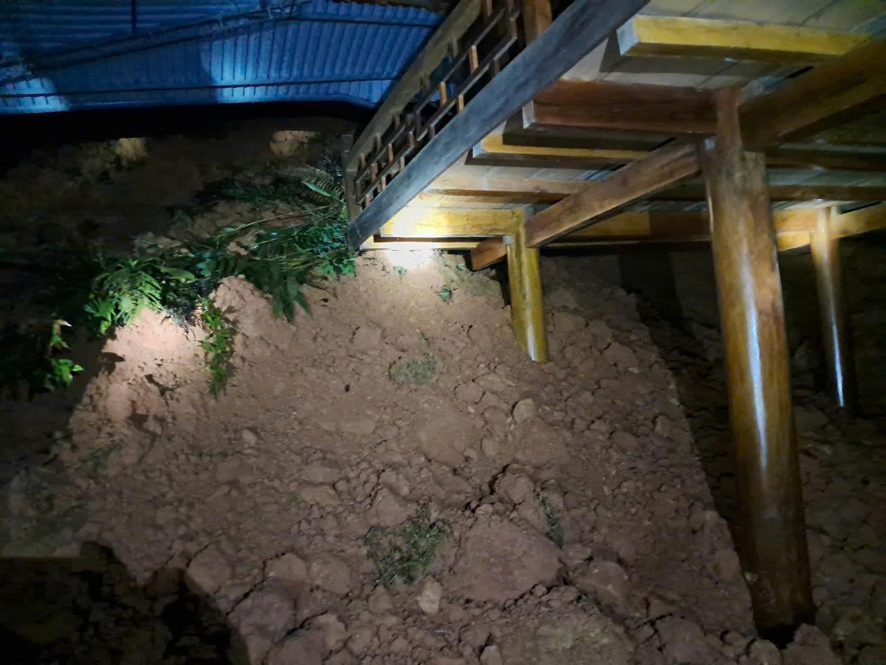 Ngoài ra, trong đêm, sạt lở đất xảy tại bản Đồn Boọng khiến ngôi nhà gỗ của ông Cụt Văn Đình bị hư hỏng nặng. Thời điểm xảy ra sạt lở, gia đình ông Cụt Văn Đình đã nhanh chóng rời khỏi căn nhà nên không xảy ra sự cố đáng tiếc về người.