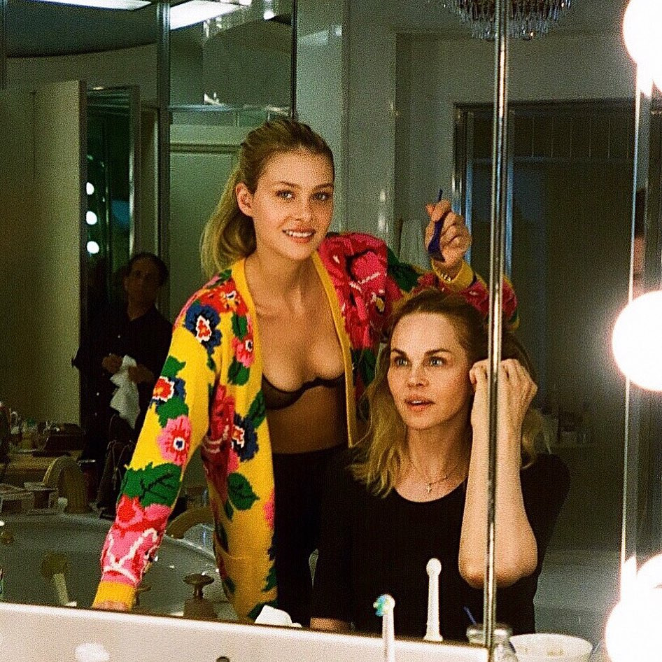Trong bức ảnh mới nhất chụp cùng mẹ, Nicola Peltz mặc áo choàng rực rỡ lấp ló ngực đầy với bra.