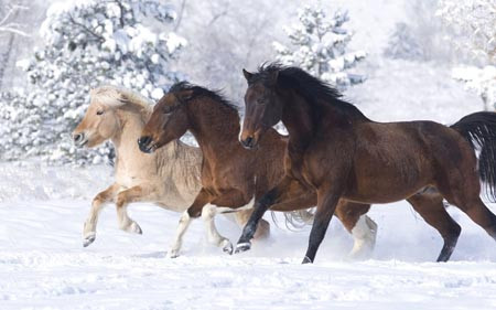 Đến mùa xuân, người ta thường thả ngựa nuôi trong nhà vào các cánh rừng để những con ngựa này dụ ngựa hoang trở về trang trại khi mùa đông khắc nghiệt kéo đến.