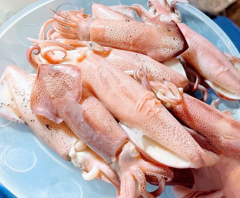 Câu mực đêm không ồn ào, không gấp gáp. Thả cần xuống, buông lơi một chút chờ đợi, rồi bất chợt thấy cần khẽ giật - là lúc biết có khách phương xa vừa ghé. Mực lên khỏi mặt nước, ánh đèn vàng trên thuyền hắt xuống thân nó - óng ánh như mảnh ngọc sống.