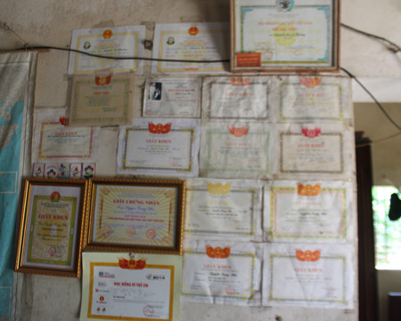 Những tấm giấy khen, bằng khen minh chứng cho thành tích học tập của Mến.