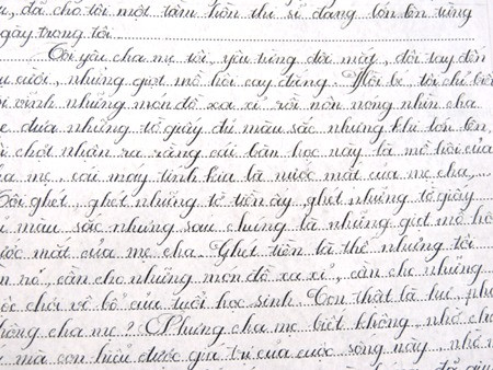 Tác giả của những nét chữ đẹp như in này là Phạm Duy Tân, đang là học sinh lớp 7/9 THCS Minh Đức, Q.1, TPHCM. Nhìn vào nét chữ của Tân trong bài văn viết về tình cảm đối với đấng sinh thành, nhiều người phải “dựng tóc gáy” khi ngỡ đó là chữ in.