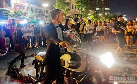Theo thông tin từ thành viên của nhóm mô tô phân khối lớn tham dự màn cầu hôn cho biết, cô dâu tên Ngọc và chú rể tên Trung.