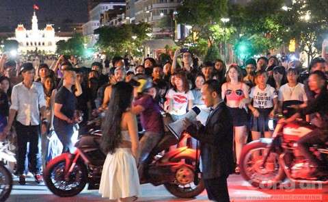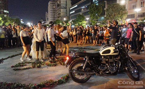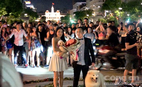Khoảng 23h40 hôm qua, một chàng trai đã có màn cầu hôn lãng mạn với người yêu, trước sự chứng kiến của hàng ngàn bạn trẻ tại Quảng trường Nguyễn Huệ (TP.HCM).