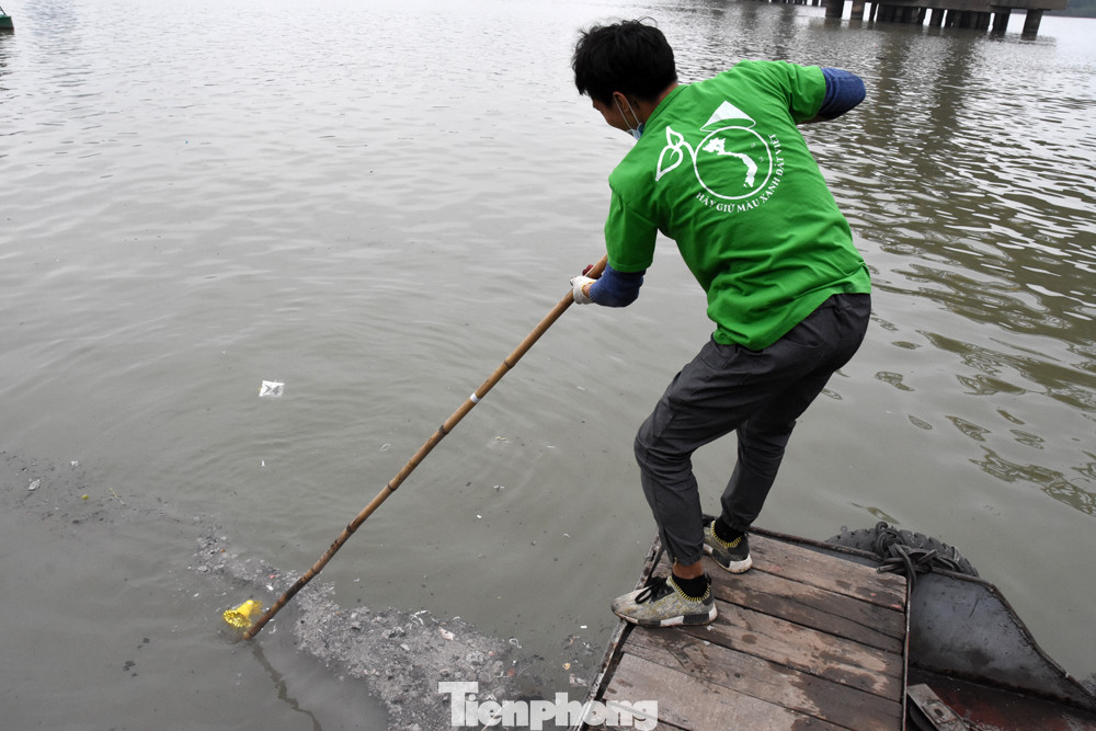 Một số bạn trẻ tình nguyện với khẩu hiệu "hãy giữ màu xanh đất việt" miệt mài vớt rác do người dân thả xuống sông.