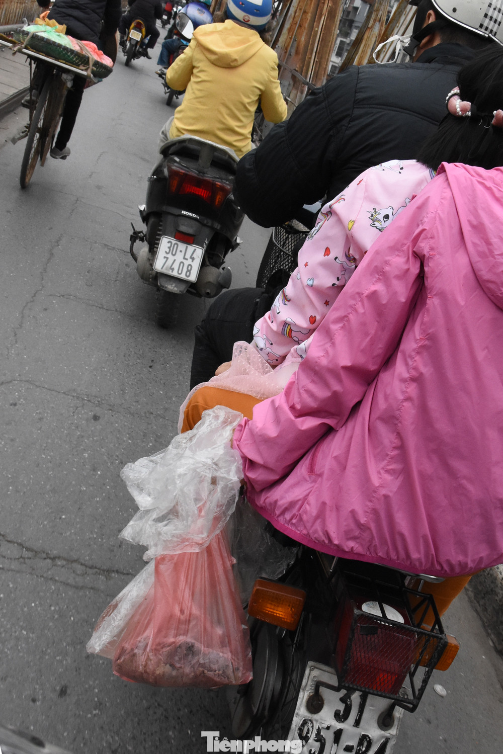 Tại khu vực giữa cầu Long Biên, nhiều người dân đi thả cá chép tiễn Táo quân chầu trời, khiến cho một số thời điểm, cây cầu này bị ùn tắc giao thông.