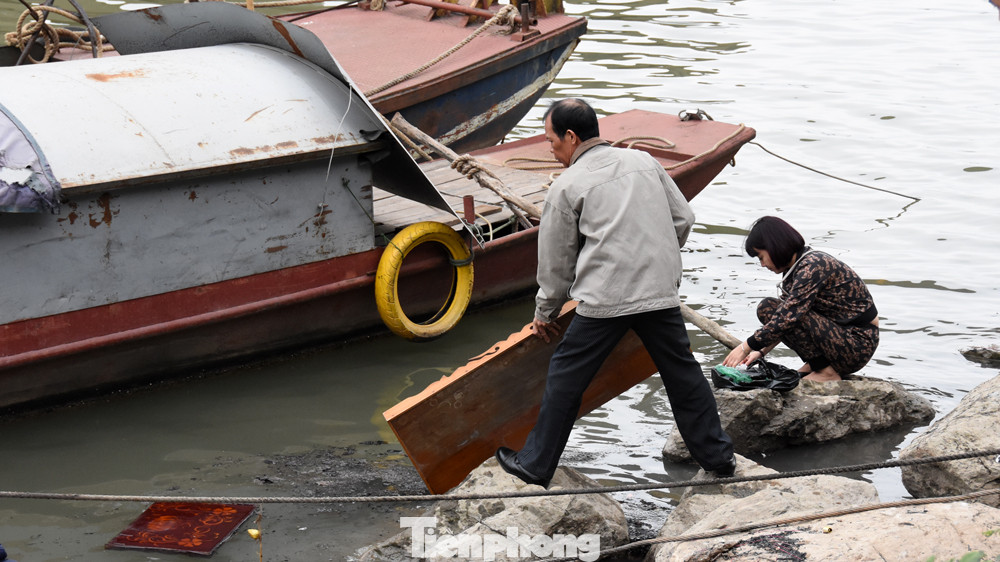 Ngoài thả cá, tro nhang. Nhiều người còn thả cả những chiếc ban thờ rất lớn xuống mặt nước.
